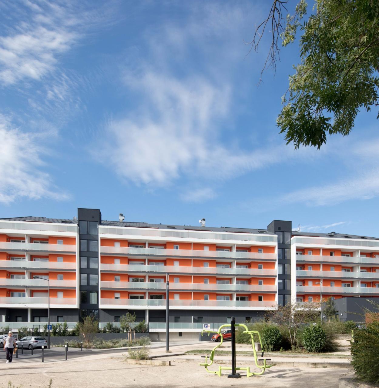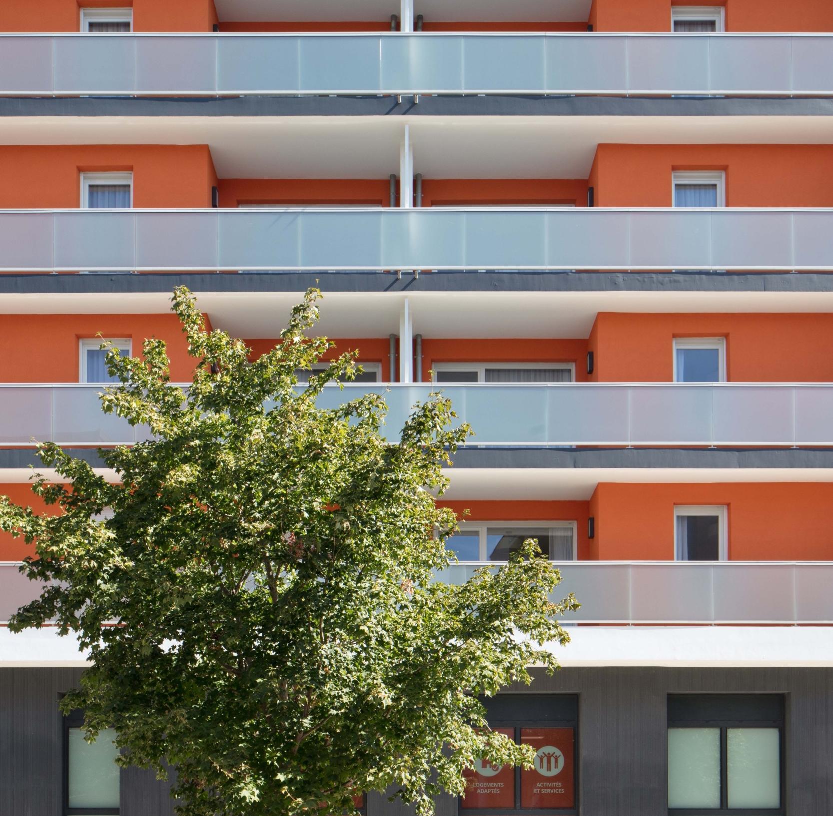 At 20 km from Lyon, this senior living residence consists of five floors and 87 apartments (ranging from studios to T3). The building adopts a simple form, divided into three sub-volumes housing the vertical circulation. The entire structure rests on a glass volume dedicated to commercial and service spaces. At the rear, a restaurant opens onto a terrace and a garden at ground level. The Unanime Chantier subsidiary managed the entire construction process, including contract management.
